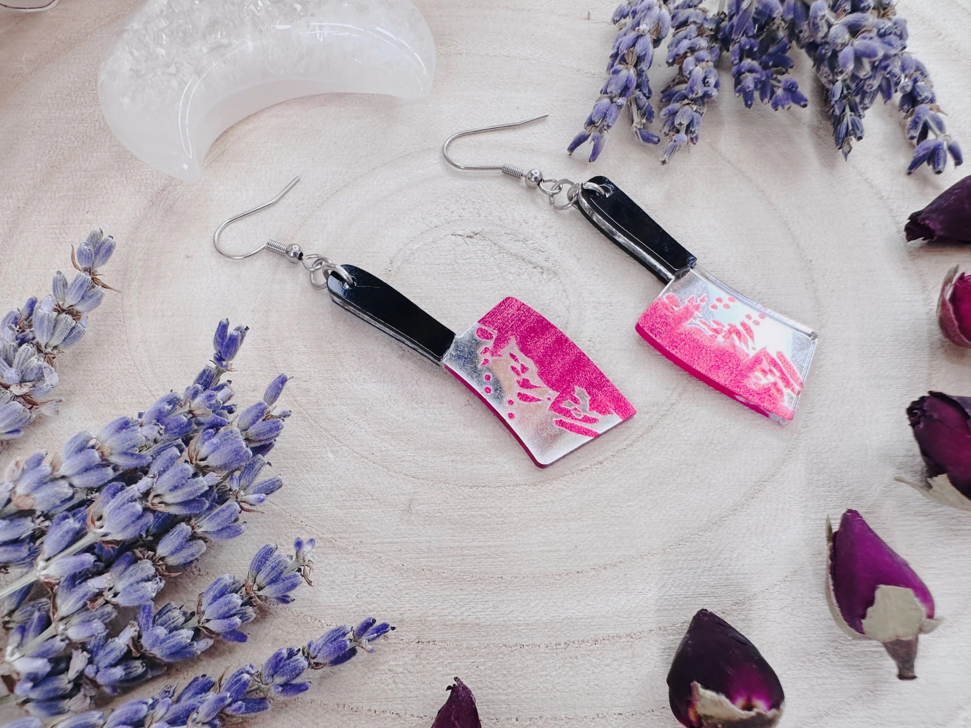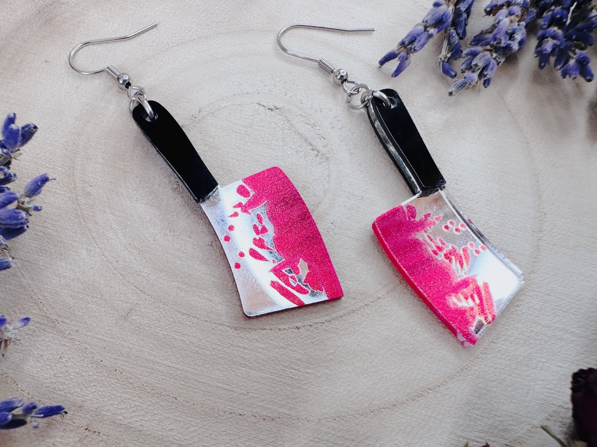 Bloody Cleaver Earrings Are Made From Mirrored Acrylic & Are Double Sided