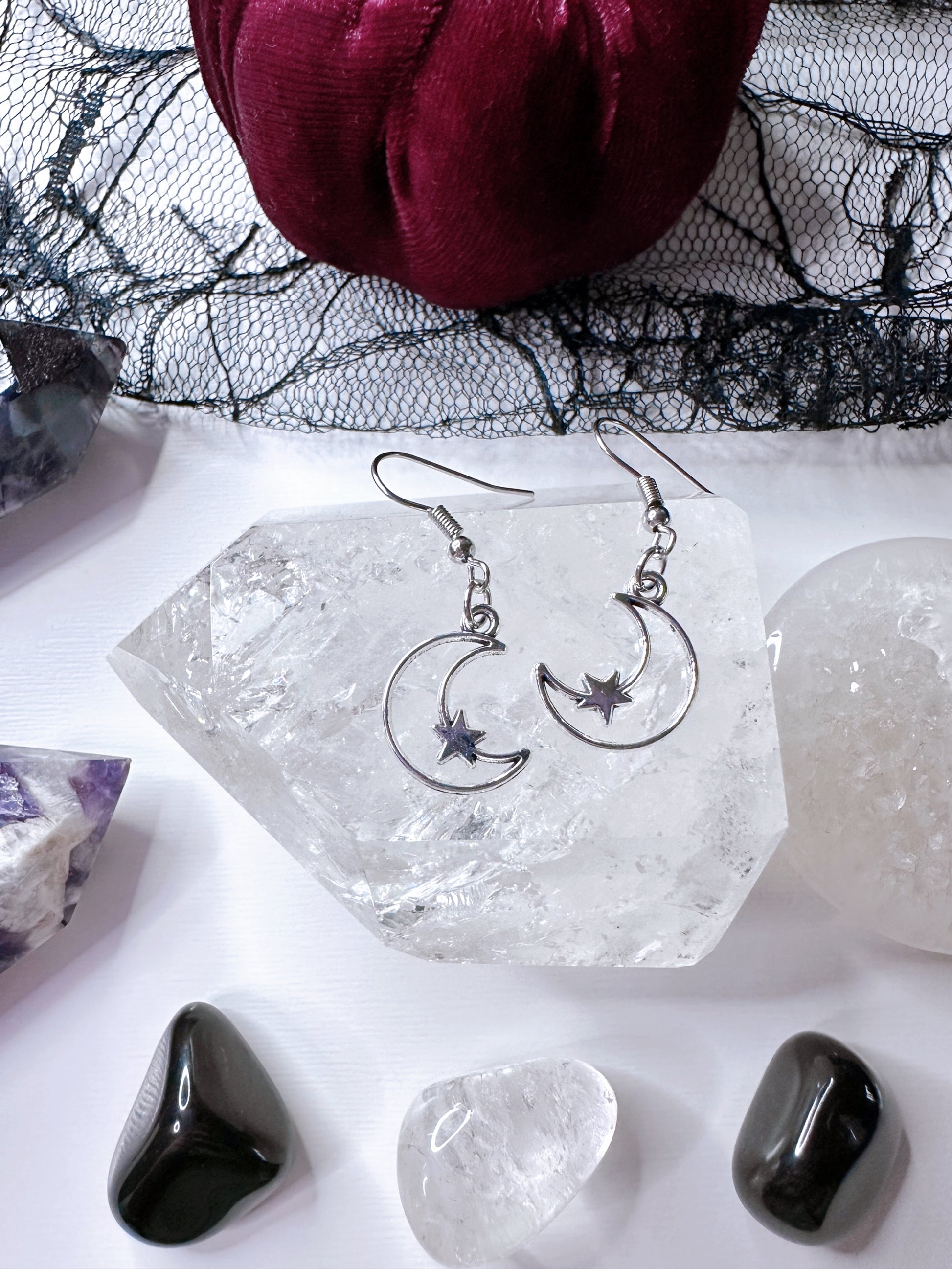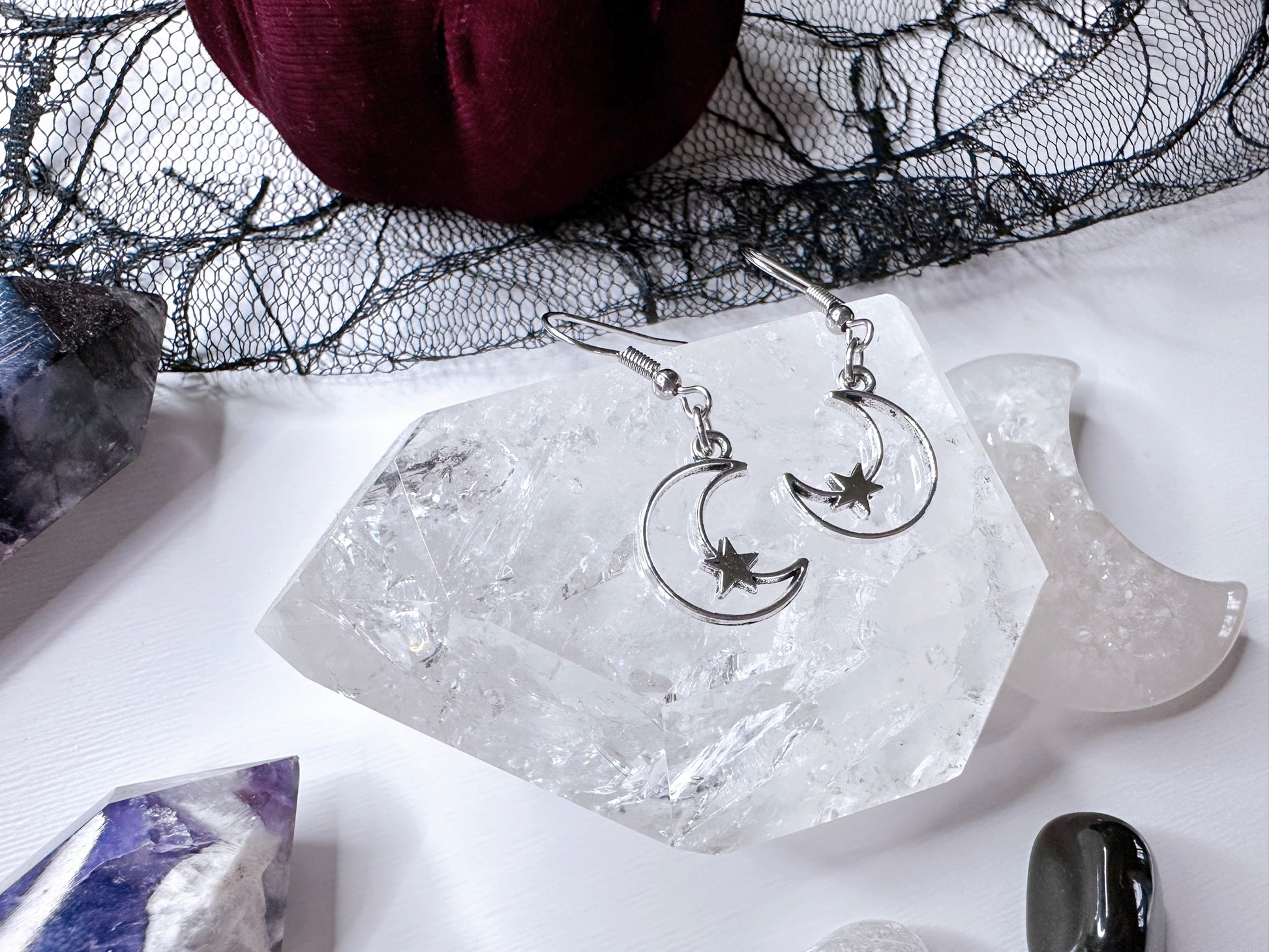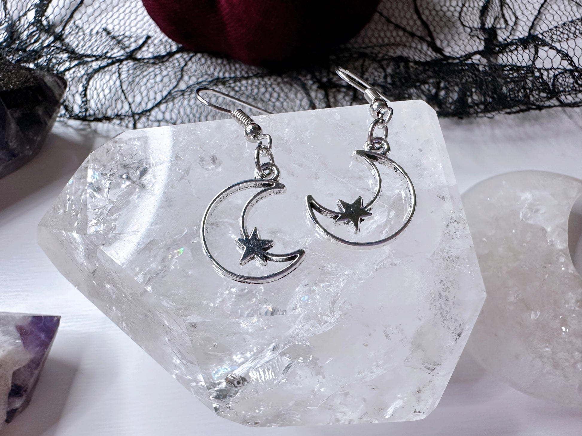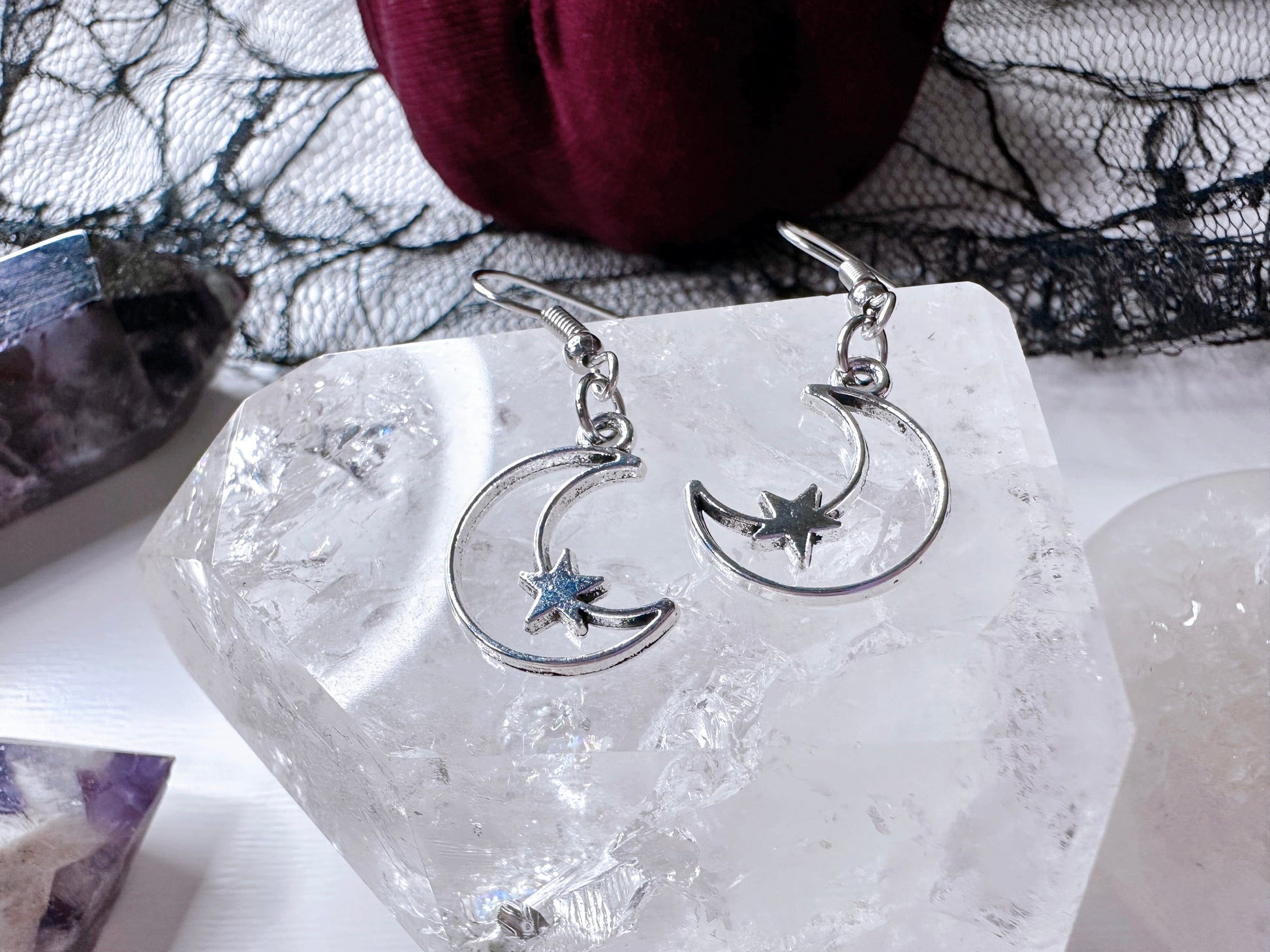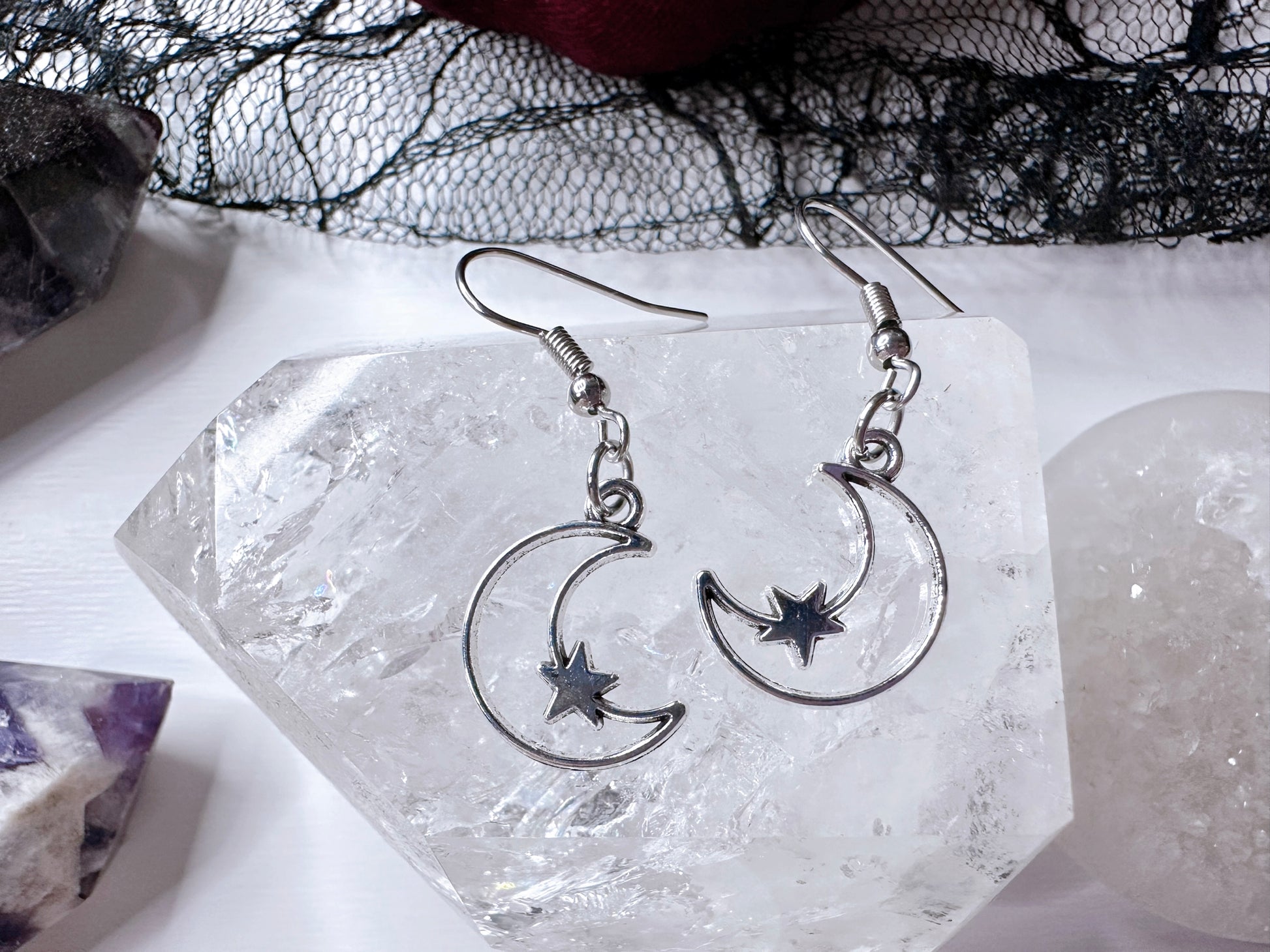 Crescent Moon & Star Earrings Are Made From Zinc Alloy & Suspended On Stainless Steel Earring Hooks