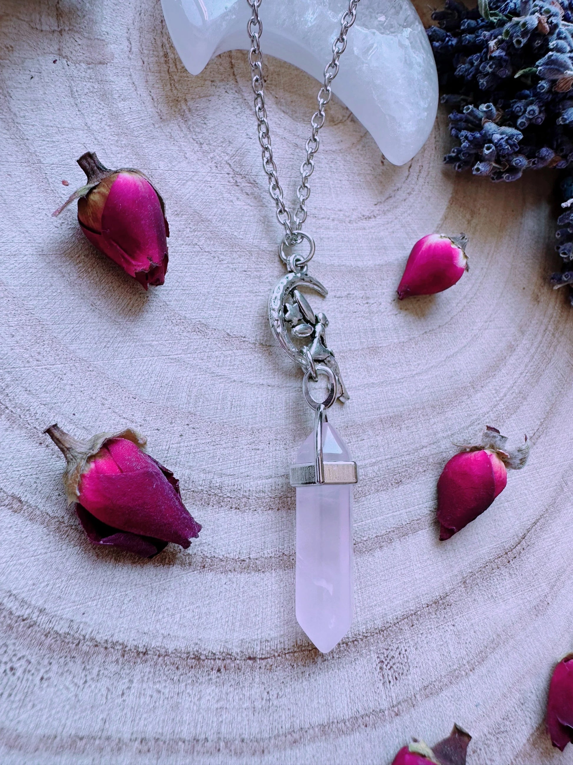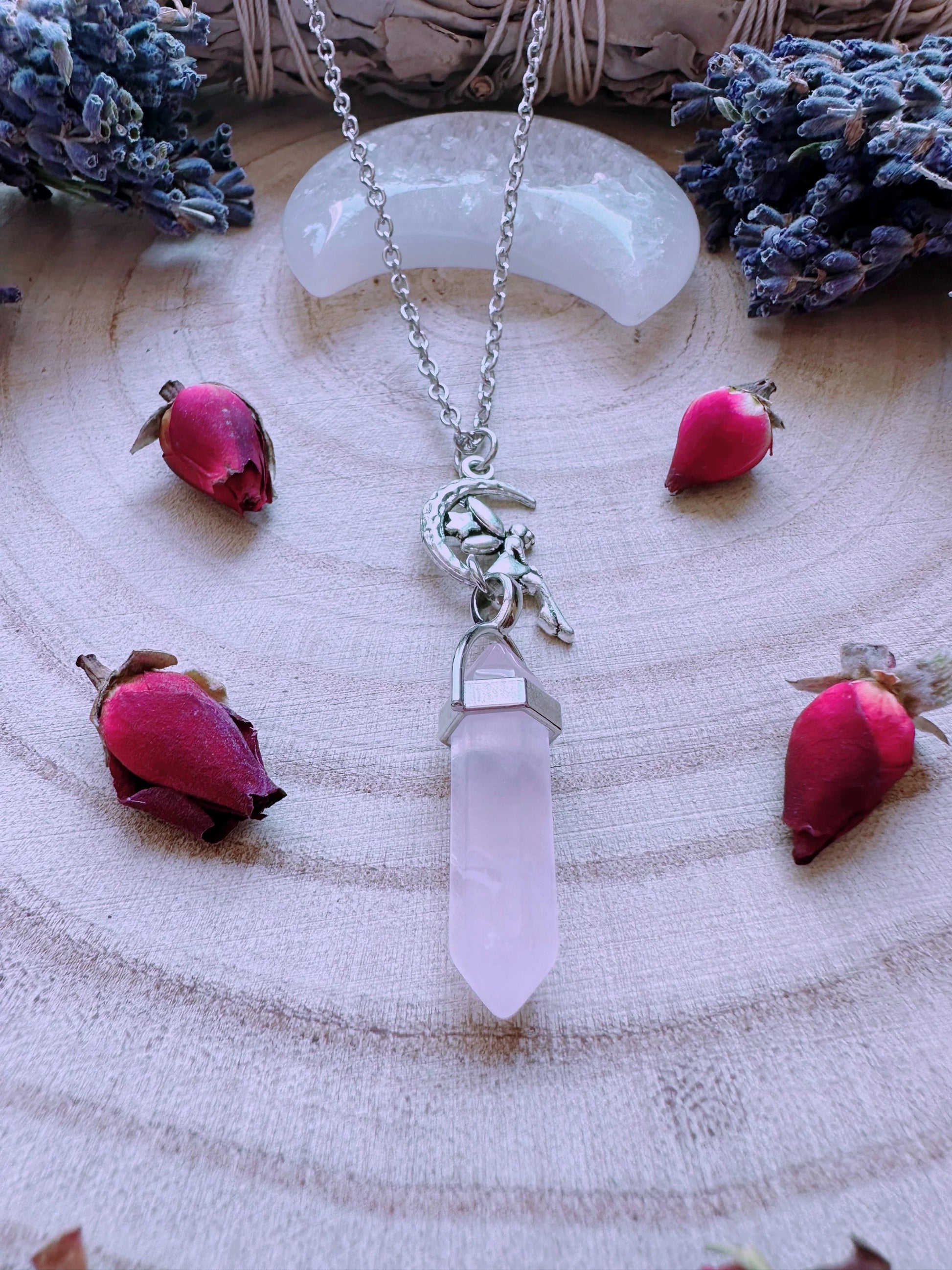 Faerie Moon Rose Quartz Necklace
