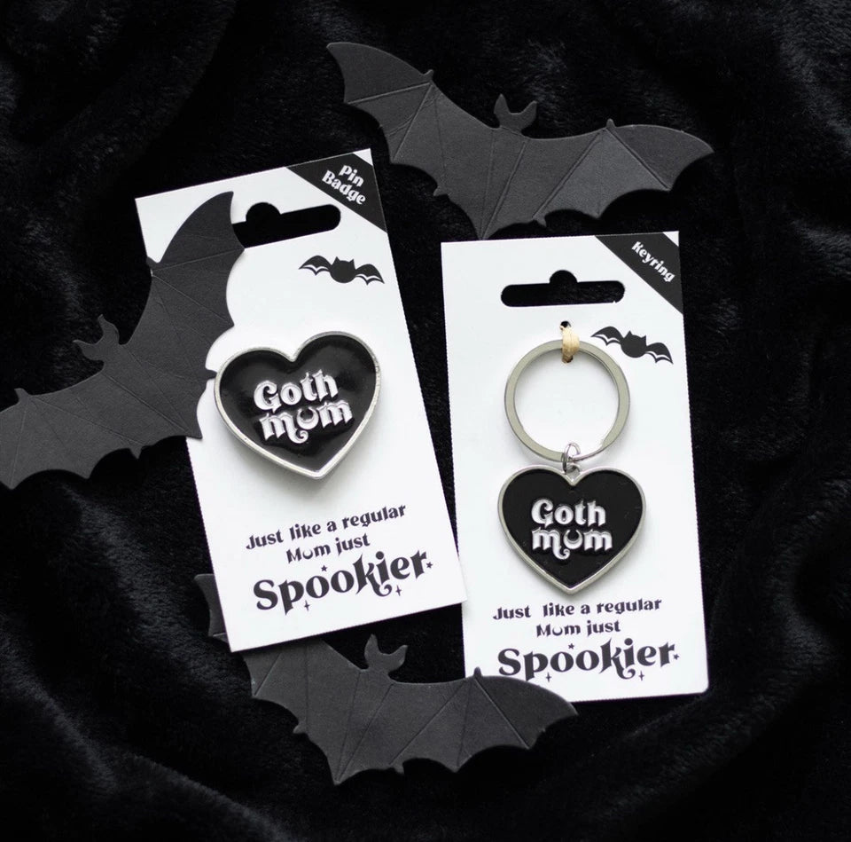 Features 'Goth Mum' text on a matching backing card.