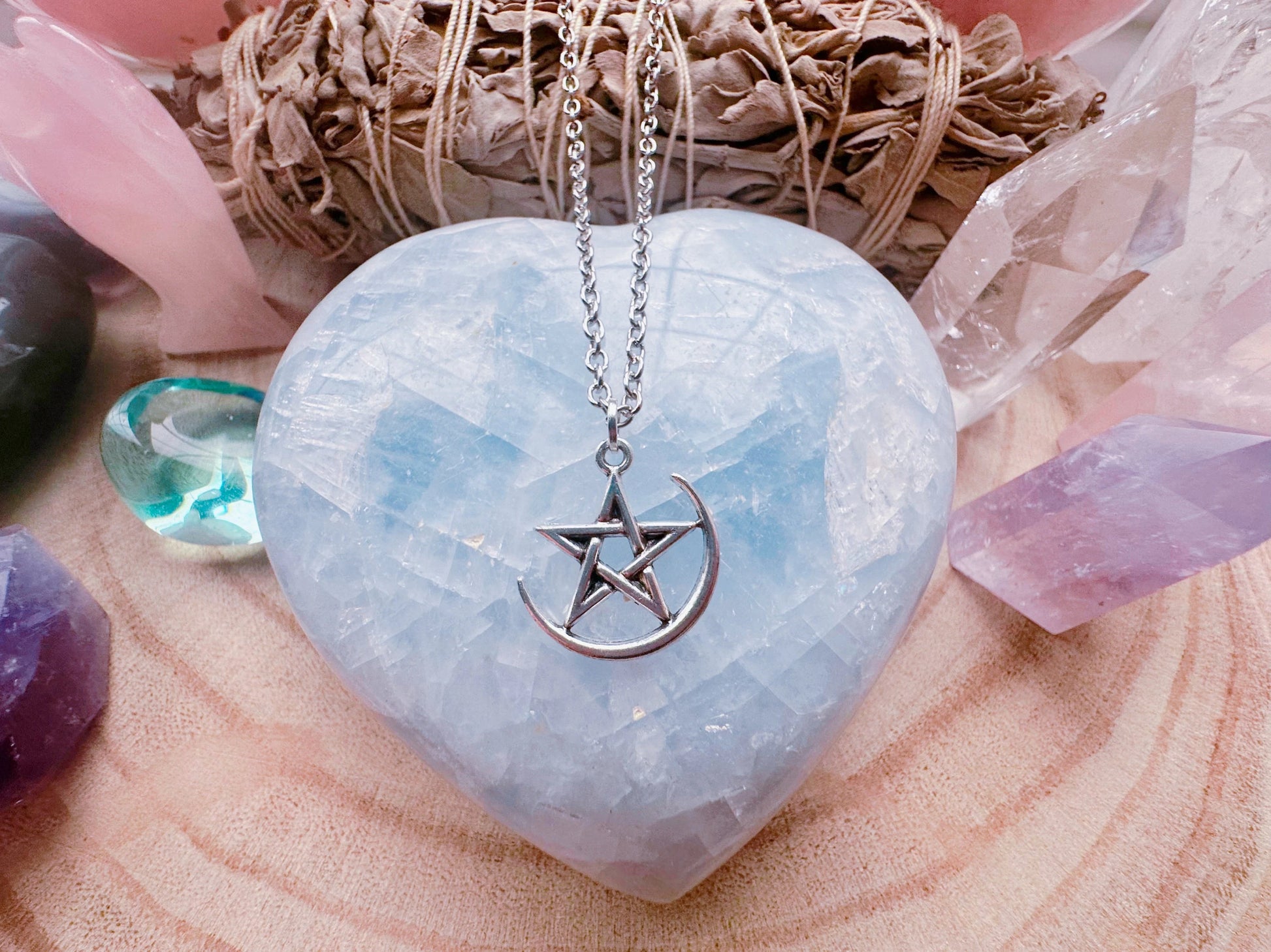 Moon Maiden Crescent Moon & Pentagram Necklace