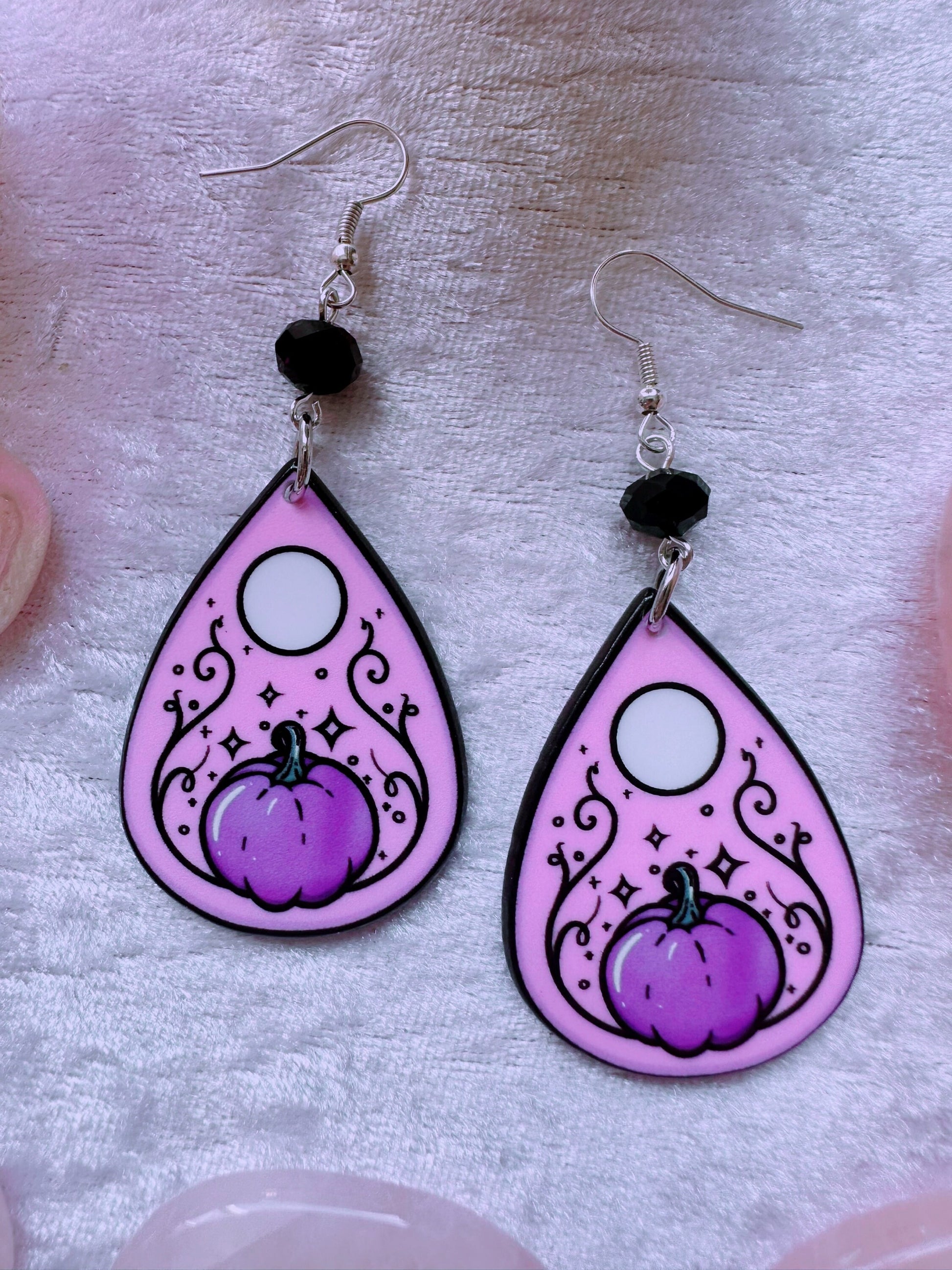 Beautiful Purple Pumpkin Ouija Planchette's Adorned With Stunning Black Austrian Crystal Beads
