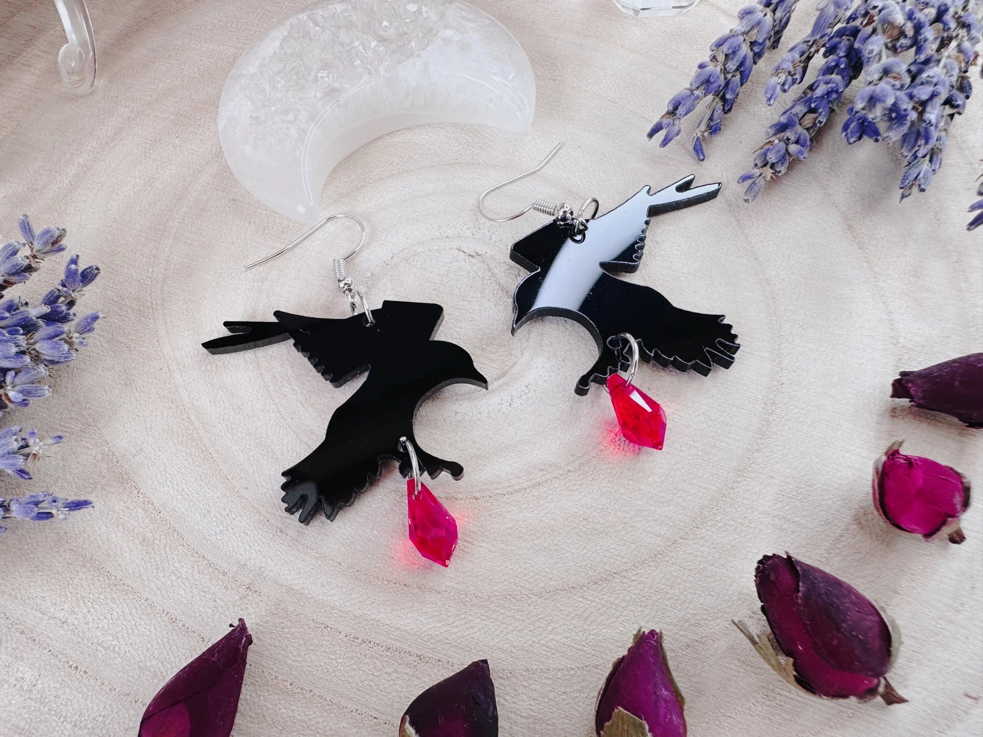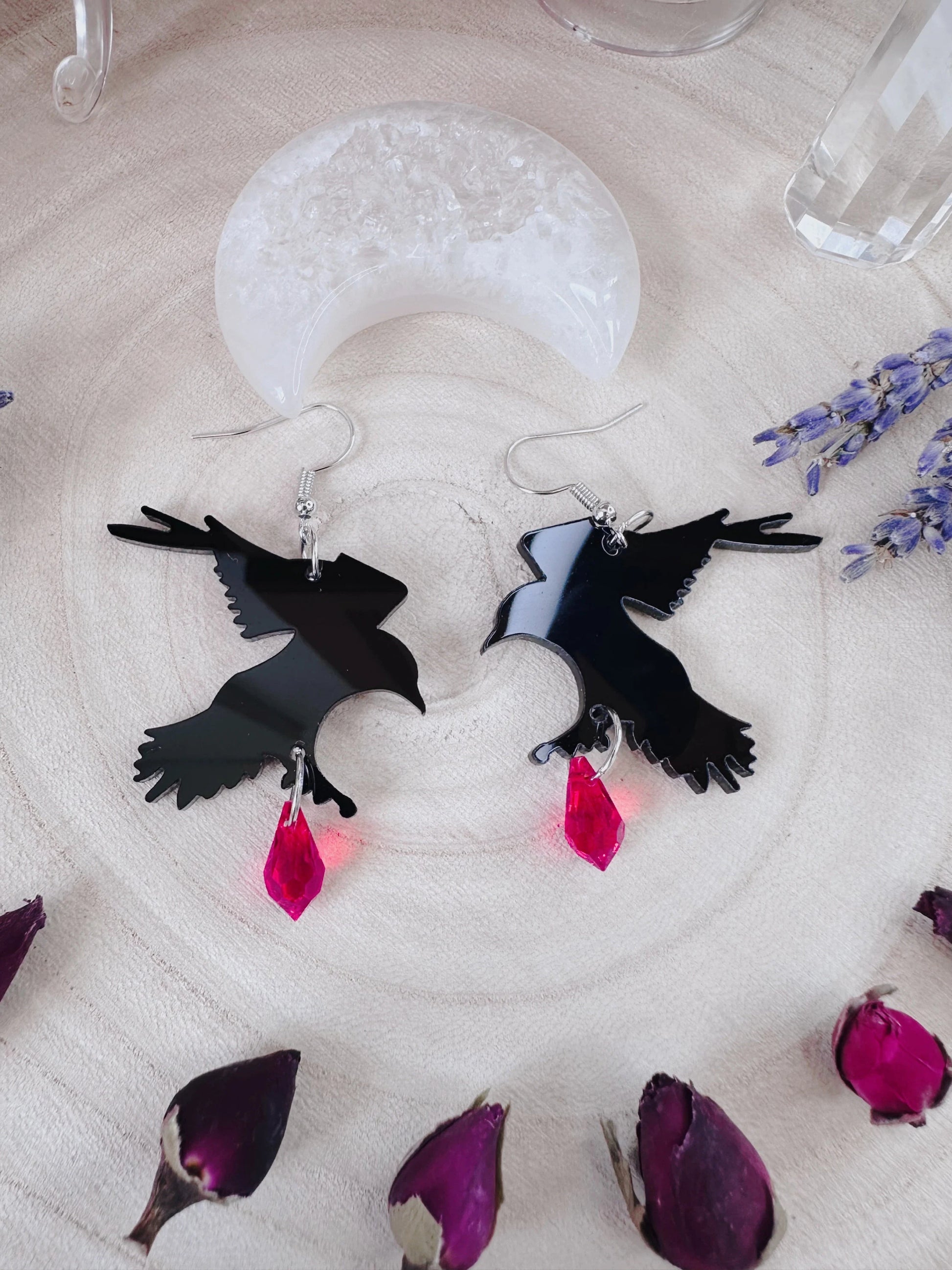 The Gorgeous Ravens Measure 4cm In Height & 5cm In Width, Adorned With A Blood Red Droplet Measuring 1.5cm In Length & 1cm In Width