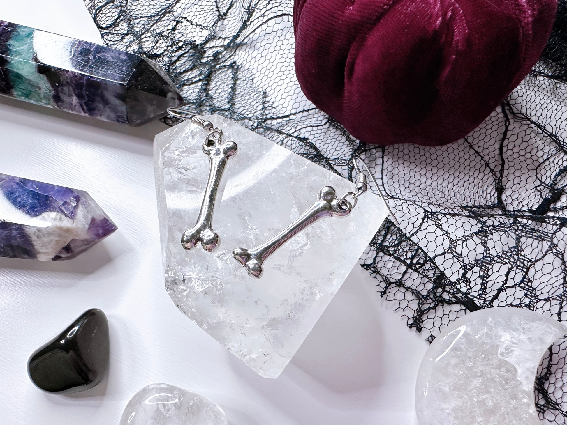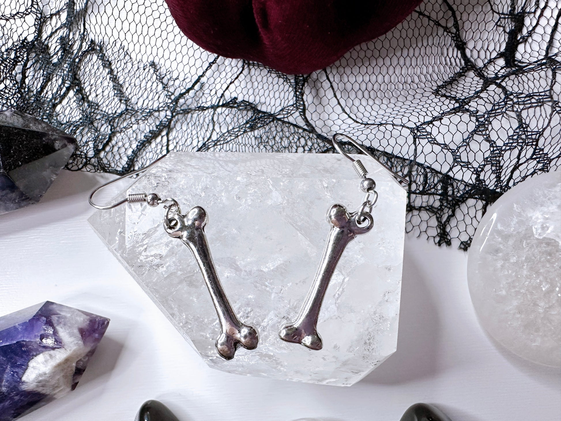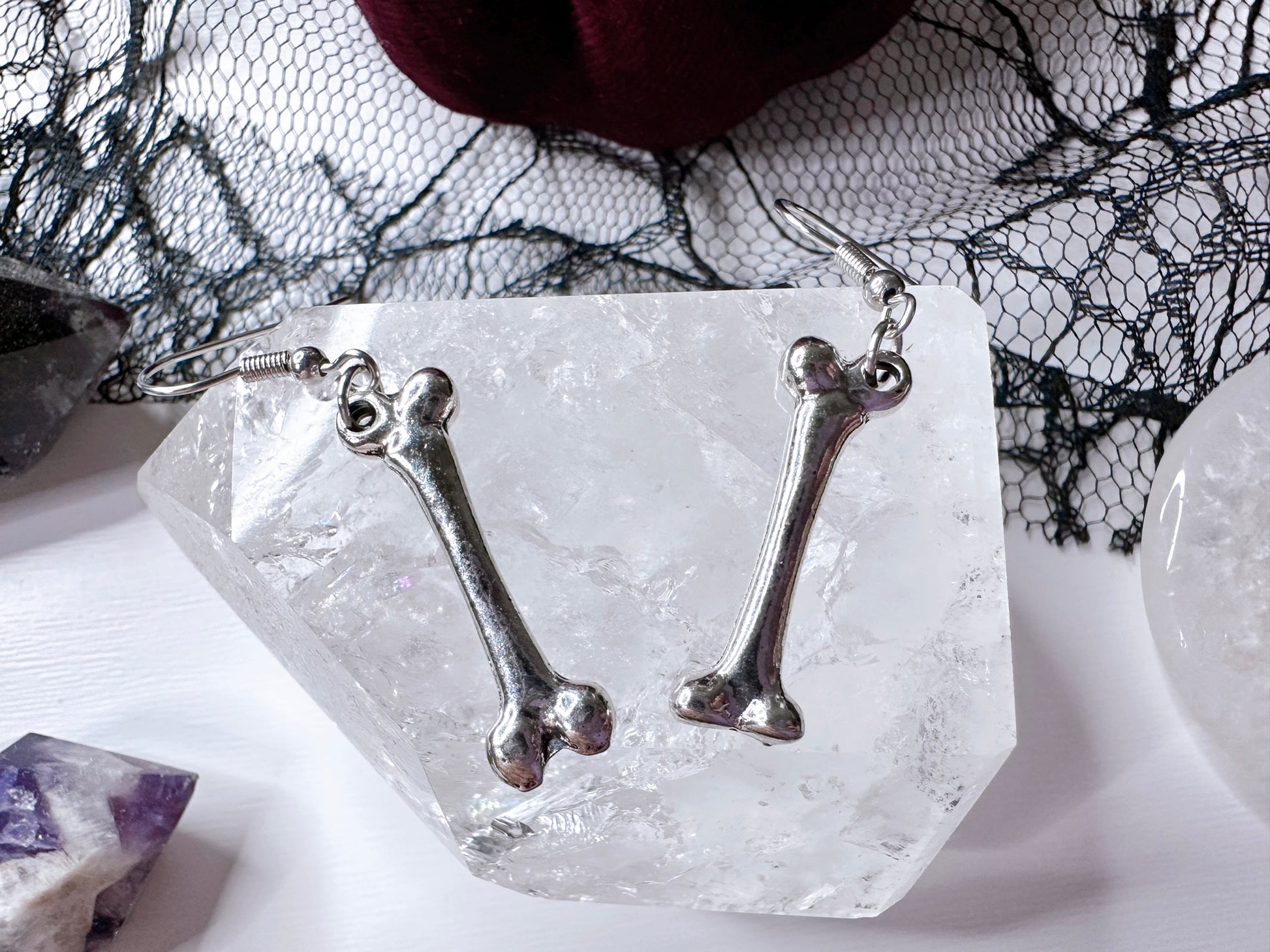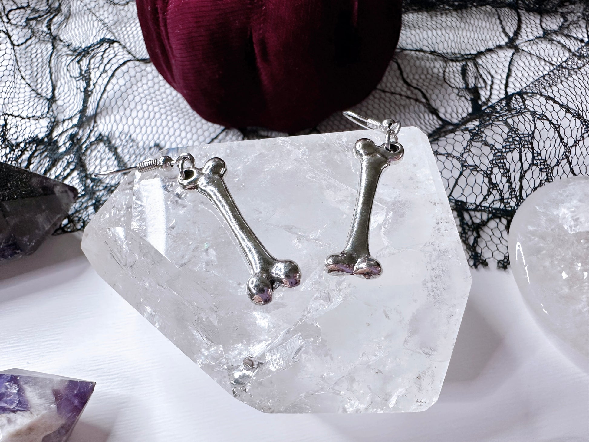 Silver Bone Earrings Are Made From Zinc Alloy & Suspended On Stainless Steel Earring Hooks