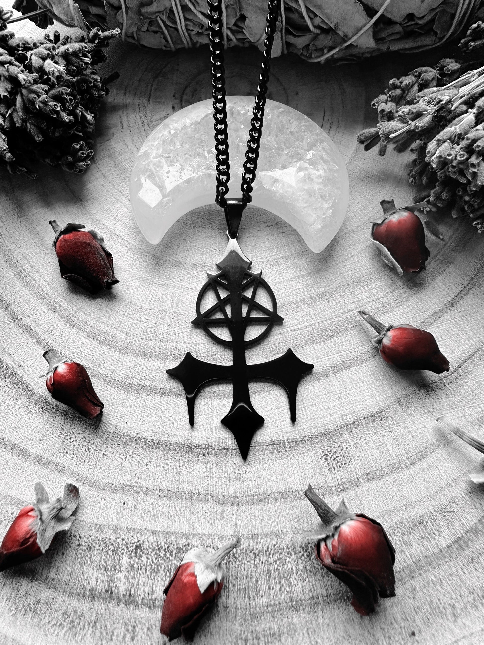Stainless Steel Black Inverted Cross & Pentagram Necklace