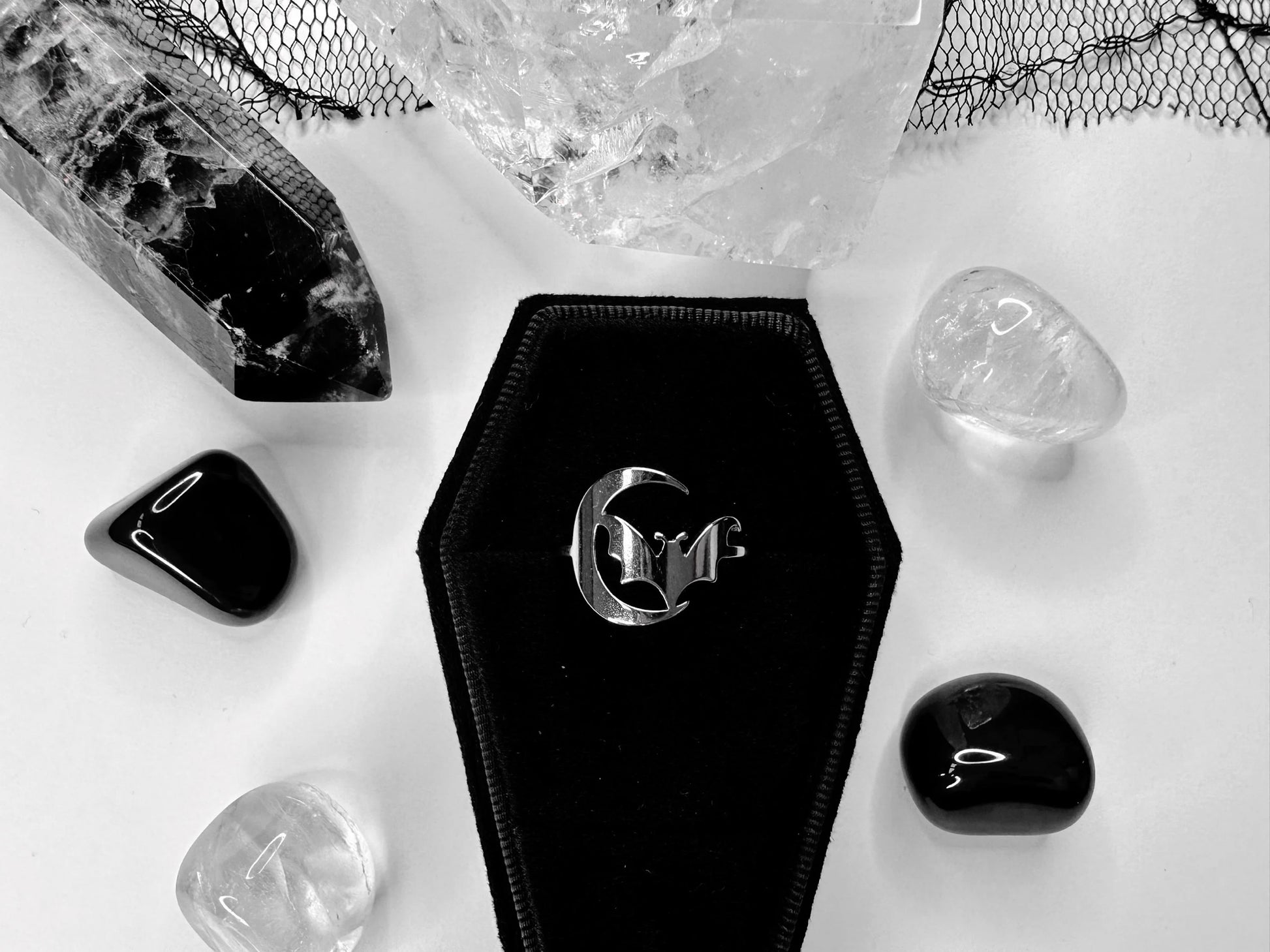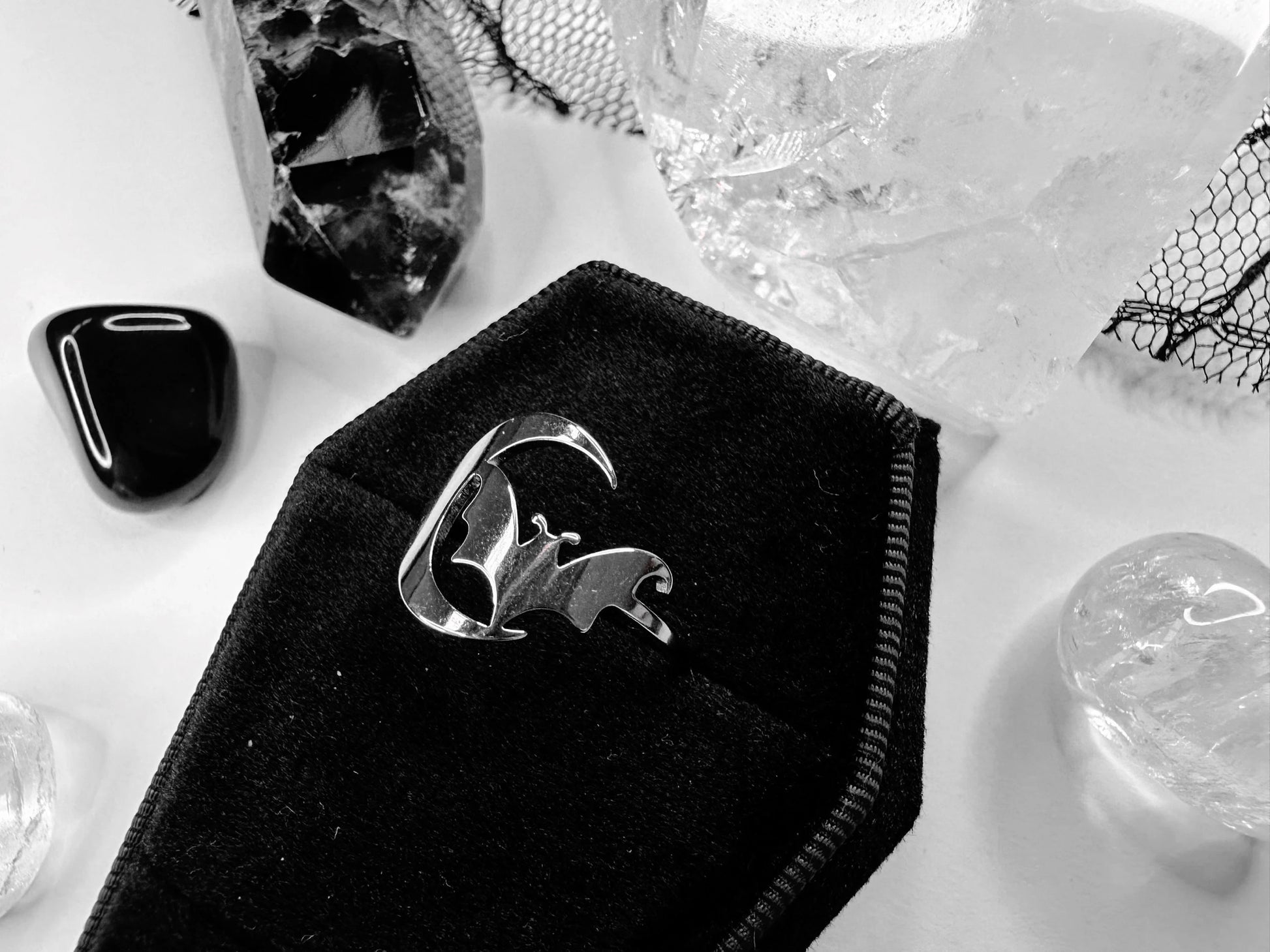 This Gorgeous Crescent Moon & Bat Ring Is Made From Stainless Steel