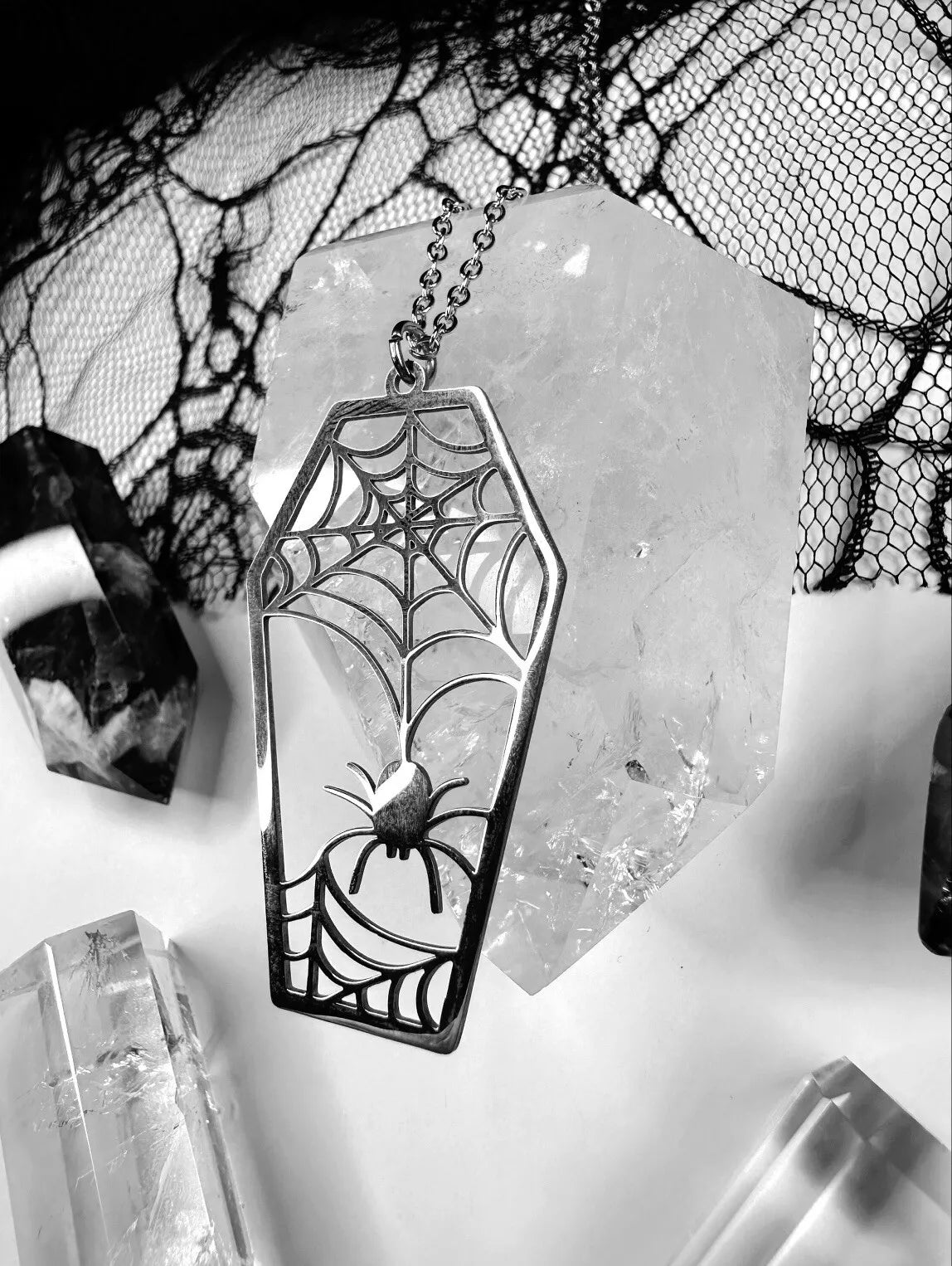 Gothic Stainless Steel Spider Web Coffin Necklace